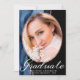 Envoyez à votre famille et à vos amis cette parties scintillant chic 2021 et glam carte de faire-part de graduation photo personnalisée pour les wow. Ce design modèle moderne comprend une photo pour vous changer à votre propre encadré en parties scintillant d'or rose faux avec une bordure d'or bleu et rose agate d'art abstrait sur la gauche et noir sur la droite. Sous votre photo, vous pouvez lire "Graduate" en élégante typographie en écriture blanche avec votre nom, l'école et l'année pour personnaliser. Conçu par Susan Coffey.