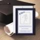 C'est une Faire-part de Graduation rayée bleue qui présentera votre grade. L'avant aura une photo du diplômé tandis que l'arrière aura une image d'un footballeur. Le libellé avant est entièrement modifiable : Nom Classe Année École Le libellé arrière est également modifiable : Il l'a fait! Informations sur le diplôme.