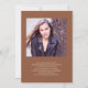 Carte à plat de la photo de graduation personnalisée brun et bronze (couleur modifiable). Personnalisé avec 2 photos, le nom du diplômé, le nom de l'école et l'année de remise des diplômes. Au dos se trouve une autre photo accompagnée d'une note à des amis et à la famille. Cette note peut vous parler des réalisations de votre diplômé au secondaire et/ou de leurs plans pour l'avenir. Il peut inclure des informations sur la cérémonie de remise des diplômes ou une invitation à votre fête de remise des diplômes.