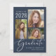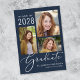 Simple faire-part de graduation bleu foncé avec un collage photo de 3 images et "Graduate" dans un script blanc élégant. Ajoutez le nom du diplômé, l'année de classe et l'école ou l'université dans la typographie blanche moderne.