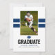 Carte de faire-part moderne de remise de diplômes avec 2 rayures de sport bleu marine, 2 photos du diplômé (une sur le côté), un tableau de bord, et un modèle texte facile à personnaliser.