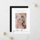 Script de signature, cliché photo, faire-part de graduation. Caractéristiques, photo portrait vertical unique sur l'avant et fond noir solide.