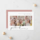 Script de signature, 3 cliché photo, faire-part de graduation. Caractéristiques, 3 photos de portrait vertical sur l'avant et solide support couleur rose rose foncé.