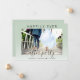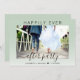 Élégante invitation de mariage ou d'annonce de mariage privé ou elopement vert sauge. Le recto présente votre photo, "Happily Ever After Party" en typographie simple et un script tendance avec fioritures, et vos prénoms et date de mariage. Au verso, vous pouvez personnaliser votre annonce de mariage et invitation avec plus de détails et ajouter vos noms dans un script ressemblant à une signature.