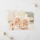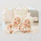 Carte de Faire-part photo blanche manuscrite moderne de naissance bébé avec script blanc. Étincelle et Parties scintillant ©. Plus de styles disponibles dans notre boutique. La typographie est superposée avec le mot "bienvenue" dans une police de script manuscrite. Design élégant et polyvalent, vous pouvez customiser pour les jumeaux, nouveau faire-part bébé. Motif pois or, rose et bleu sur le dos.