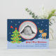 Carte photo de Noël mignonne et sucrée. Parfait pour le premier Noël de bébé. Il propose une scène hivernale avec le rudolph et un sapin de Noël. Ajoutez votre propre image et votre libellé.