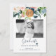 Blush rose, ivoire pêche, et bleu marine peony boho bouquets de fleurs chic avec feuillage, un petit casquette diplômé, et un faux cercle métallique en cuivre monogrammé en or faisant une carte moderne de graduation glam avec un script de typographie chic et entièrement modifiable. ++++++++++++++++++ Facile à personnaliser avec la photo, le nom, le monogramme initial, l'école et l'année de graduation du diplômé !