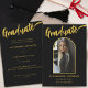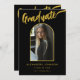 Célébrez la graduation du collège de votre fille avec une belle carte de Faire-part minimaliste avec arche photo numérique noir et or élégant. Marquez la remise de diplômes de votre fille avec cette carte de Faire-part photo de graduation en calligraphie de script moderne, conçue pour capturer l’esprit de l’occasion. Doté d'un élégant script de calligraphie dorée sur un arrière - plan noir frappant et d'un élégant modèle en arc pour votre photo d'études supérieures, cette carte dégage style et charme. L’avant présente le mot "diplômé" en écriture de calligraphie dorée époustouflante, le nom de votre fille et les détails de graduation en typographie or moderne sur un arrière - plan noir, tandis que l’arrière met en évidence des informations supplémentaires en typographie or moderne. Cette carte comprend un modèle photo facile à utiliser, vous permettant de la personnaliser avec une photo chère de votre diplômé, ce qui en fait le sien unique. OEuvre d'art originale unique et design créé par l'artiste Catherine Sweetman, cette carte est une façon époustouflante de commémorer son succès universitaire et de partager l'occasion joyeuse avec des amis et la famille.