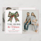 Partagez la joie de votre famille en pleine croissance avec notre Faire-part de grossesse Photo Plus le Merrier Holly bow Christmas! Cette carte festive présente un joyeux thème de vacances et la douce phrase The More The Merrier, capturant parfaitement l'excitation de votre plus récent ajout sur le chemin. Ajoutez une photo spéciale et un message personnalisé pour permettre à vos amis et votre famille de découvrir les nouvelles merveilleuses de la période la plus magique de l'année. Idéal pour combiner la joie des vacances avec l'excitation de votre faire-part, cette carte répand l'amour et l'anticipation pour votre arrivée à venir!