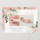 Présentation d'un faire-part de naissance floral rose vif multiphoto. Belle aquarelle florale et texte de script élégant. Partie d'une collection.