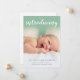 Design simple et moderne pour vos annonces de naissance avec une photo à fond saigné avec introduction en blanc de typographie manuscrite. Personnalisez avec le nom du bébé, la date de naissance, les statistiques de naissance et le nom des parents.