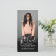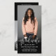 Partagez la joie d'un baccalauréat ou d'un collège avec une élégante combinaison de faire-part et de cartes d'invitation avec deux photos et un code QR personnalisé. Avec cette carte téléchargeable, vous pouvez annoncer la réussite du diplômé et fournir des photos et des détails supplémentaires par l'intermédiaire d'un emplacement en ligne de votre choix, comme un site Web, une page de médias sociaux, une faire-part numérique, une invitation à la fête ou un album photo. Selon la façon dont il est configuré, le lien peut fournir un endroit pour les amis et la famille pour poster une note en ligne, donner un cadeau d'application de paiement, ou voir plus d'informations, comme les détails de la fête et rsvp. Le design moderne en noir et blanc comprend un casquette en carton de mortier, une calligraphie de script tendance, une typographie classique élégante et deux photos de votre choix, telles que des images de haut niveau ou des images de la cérémonie de début. Les images et le libellé de ce modèle sont simples à personnaliser et les couleurs sont faciles à changer à l'aide de l'outil de design Zazzle. Cette chic carte de graduation verticale téléchargeable est une façon élégante d'annoncer une fête spéciale. Félicitations au diplômé !