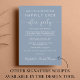 Le bleu poussiéreux moderne sauvez la date de l'annonce pour une réception ou une fête pour célébrer votre événement ou petit mariage privé. "Save the Date For Our Happily Ever After Party" est écrit dans une simple typographie blanche et un élégant script blanc avec des swashes, et vous pouvez personnaliser votre faire-part mariage en plus de détails et ajouter la réception enregistrer les détails de la date et vos noms dans un script signature. Au verso, ajoutez vos prénoms et les dates de mariage et de réception.