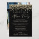Faire-part élégant de mariage ou d'union privée ou de fuite en noir. Le devant présente un overlay de confettis pailletés dorés et "Fête de Mariage Pour Toujours" en typographie dorée simple et un script doré moderne chic. Personnalisez votre annonce et invitation et ajoutez vos noms dans un script ressemblant à une signature. Le verso présente votre photo de mariage, vos prénoms et la date du mariage.