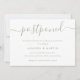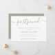 Annoncez le report de votre mariage avec cette carte verte sage minimaliste avec une police de caractères script moderne.