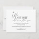 Une merveilleuse typographie moderne et simple Notre mariage est reporté carte d'annonce de mariage. Design minimaliste noir et blanc avec police de style typographique à l'avant et à l'arrière. Au dos de la carte, il est écrit "Nous avons hâte de nous réunir à nouveau". Ajoutez votre message personnel pour informer vos invités de vérifier votre site web de mariage et qu'une nouvelle carte de réponse sera envoyée par courrier lorsque le moment sera venu.