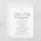 Faire-part reporté de première communion argenté avec une touche d'étoiles délicates, vous pouvez personnaliser avec vos informations spéciales de première communion dans un texte argenté chic. Conçu par Thisisnotme