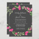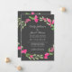 Fleurs roses aux branches verdoyantes et design feuille qui encadrent le haut et le bas de l'invitation. Un arrière - plan gris foncé avec une police blanche lui donne l'air d'élégance. Personnalisez ce modèle pour ajouter vos informations. La conception est une couronne florale et peut être customisée pour s'adapter à l'intérieur de la carte. Cliquez pour customiser plus loin pour apporter d'autres modifications. Tout est personnalisable. Vous avez besoin de personnalisation ou de questions, puis contactez le concepteur Sandy à l'adresse admin@giftsyoutreasure.com