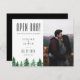 Forêt rustique aquarelle, "OPEN BAR!", humour mariage enregistrer la date carte photo. Le dos de la carte est en noir massif.