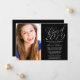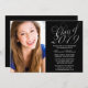 Une élégante classe de police de script noir et argent de la fête de remise des diplômes 2019 faire-part. Parfait pour un baccalauréat, un diplôme d'études supérieures ou une fête de fin d'études supérieures ! Les dessins sont des illustrations/graphiques à papier plat - PAS VRAIMENT FOIL D'ARGENT. Pour redimensionner et positionner votre photo, cliquez sur le bouton "PERSONNALISER".