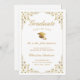Annoncez le diplôme de votre fille du lycée ou de l'université à la famille et aux amis avec cette carte de faire-part traditionnelle élégante. Ce design chic présente un casquette gris d'or et un script sur un arrière - plan blanc encadré d'une bordure de feuilles botaniques en faux lierre d'or. Le texte de calligraphie classique dit "Graduate Class of 20XX" avec le nom des parents, le nom du diplômé, l'école, les honneurs et l'année pour personnaliser Conçu par Susan Coffey.