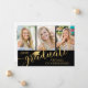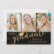 Annonce de remise de diplôme moderne avec collage photo comprenant 3 photos à l'avant et 1 à l'arrière avec une typographie de calligraphie en or métallisé pour le titre DIPLÔMÉ accentué d'une casquette de remise de diplôme ou d'un chapeau et personnalisé avec le nom et l'année de promotion de votre diplômé sur un fond noir modifiable - sélectionnez une couleur différente ou choisissez parmi une variété de fonds graphiques stylisés. Le verso comprend des détails sur votre diplômé. ASSISTANCE : Pour obtenir de l'aide pour la modification/la personnalisation de la conception, le transfert de la conception vers un autre produit ou si vous souhaitez des articles coordonnés, contactez le concepteur AVANT DE COMMANDER via Zazzle Chat ou makeitaboutyoustore@gmail.com.