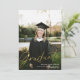 Cette faire-part de graduation à fond de sang présente un accueil "diplômé" de calligraphie moderne dans un joli faux feuille d'or. Ce design chic permet vraiment à votre photo de briller en gardant les détails minimes pendant que l'accueil donne le ton festif. Conseil : vous pouvez facilement ajouter du texte ou une photo supplémentaire au dos en supprimant le dossier motif optionnel.