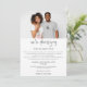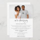 Pour les moments où une cérémonie de mariage socialement distante est nécessaire et où vous souhaitez faire savoir à vos invités que vous réduisez la taille et les inviter à la diffusion en direct, ce design contemporain moderne a votre photo en haut, et un script de style d'écriture manuscrite moderne avec Nous réduisons la taille en dessous. Le reste du texte, vous pouvez facilement le personnaliser avec vos détails.