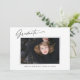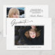 Tendance, moderne et élégant, 2 cartes de faire-part de graduation photo, avec des éléments de design de texte moderne avec script d'encre de calligraphie. Les photos du diplômé, à l'avant et à l'arrière, sont astucieusement accentuées avec une délicate et minimaliste descente de bord. Le dos de la carte offre des espaces de texte personnalisés pour des informations sur votre diplôme ou peut être effacé si vous souhaitez écrire un message à la main. Noir et blanc ou customiser facilement l'arrière - plan pour correspondre à la couleur primaire de votre école ou à n'importe quelle couleur de votre choix. Idéal pour les étudiants du secondaire, collégial et universitaire.