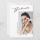 Cette carte moderne élégante de faire-part de graduation, présente des éléments de design du texte moderne fusionné avec un élégant script de calligraphie. La photo verticale des diplômés est placée astucieusement sur le devant de la carte tandis que le dos de la carte offre des espaces de texte personnalisés pour des informations sur la graduation et le futur voyage. Les Arrière - plans sont blancs sur le devant et gris argenté sur le dos ou customisent facilement ces couleurs à des couleurs de votre choix. Pour voir d'autres articles comme celui-ci, visitez mon magasin ici à "www.Zazzle.com/LakeViewCardCo". Merci