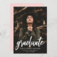 Faire-part de graduation simple avec la photo du diplômé avec "diplômé" dans une police de texte blanc tendance. Personnalisez le devant du faire-part de remise de diplômes en y ajoutant le nom du diplômé, le nom de l'école et l'année de remise de diplômes. Le faire-part s'inverse pour afficher un motif d'arroses blanches avec un arrière - plan rose vif ou la couleur de votre choix.