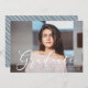 Annoncez la réalisation spéciale de votre diplômé avec nos annonces de graduation de Script de Momentous. Les annonces de graduation élégantes comportent une police de script de calligraphie moderne qui couvre la photo principale préférée du diplômé. Personnalisez les annonces de fin d'études modernes avec le nom du diplômé, le nom de l'école et l'année de fin d'études. L'envers de la faire-part comporte un arrière - plan à rayures en diagonale dessiné à la main en bleu ardoise.