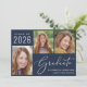 Simple Class of 2025 dark marine bleu photo graduation faire-part avec un collage de 3 images et "Graduate" dans un élégant script blanc. Ajoutez le nom du diplômé, l'année de classe et l'école ou l'université dans la typographie blanche moderne.