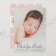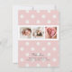 Annoncez votre nouvelle petite fille à votre famille et à vos amis dans le style avec ce faire-part de naissance photo tout simplement chic. Dispose d'une élégante couche de texte gris fusain (peut être customisé) sur la photo avant, et trois photos carrés au dos de la carte avec du texte qui peut être personnalisé. L'Arrière - plan à l'arrière comprend un motif à pois rose et blanc avec un aspect texturé. Utilisez la fonction "customiser" pour modifier les couleurs et la position du texte.