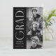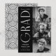 Faire-part de graduation élégante avec les trois photos du diplômé situées à droite du design dans une mise en page verticale. Le " Grad " est présenté en blanc, de style art déco moderne, avec un arrière - plan noir. Personnalisez le faire-part moderne de diplôme en photo en ajoutant le nom du diplômé, l'année de diplôme et le nom de l'école. La conception inverse pour afficher un arrière - plan pivotant géométrique noir et blanc. Parfait pour les bacheliers et collégiaux !