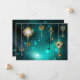 Or, clés antiques avec engrenages et cadrans accrochés sur chaînes dorées sur arrière - plan vert lumineux.