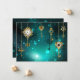Or, clés antiques avec engrenages et cadrans accrochés sur chaînes dorées sur arrière - plan vert lumineux.