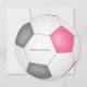 Cette mignonne invitation à la fête d'anniversaire sur le thème du football présente un graphique de ballon de football, avec les panneaux typiquement noirs du ballon de football recolorés rose et gris, sur lequel vous pouvez customiser tous les détails de la fête - par katz_d_zynes