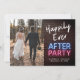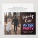 Faire-part de mariage moderne et tendance ou annonce de mariage intime et invitation à une réception pour informer la famille et les amis que vous vous êtes mariés lors d'une petite cérémonie de mariage, et les inviter à une réception ou une fête de mariage. Le recto présente votre photo de mariage et "Happily Ever After Party" dans un mélange de typographie blanche cursive et rouge et bleue avec un effet de néon lumineux sur fond de mur de briques. Au verso, vous pouvez personnaliser votre message avec plus de détails et vos noms dans une écriture ressemblant à une signature.