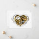 Mechanical, volumetric, steampunk heart with pressure gauge, steel and gold gears on white background. Steampunk style.