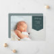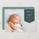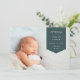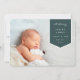 Faire-part de naissance moderne simple avec un seul fond plein de saignement photo horizontale ou orientée paysage avec une bannière pointue en haut à droite, portant le nom du bébé, la date de naissance et les statistiques de naissance. Ajoutez un message personnel à l'arrière, ainsi que trois photos carrés supplémentaires.