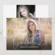 Cette annonce de remise de diplôme propose un cadre photo qui remplit toute la face avant accentuée par le texte de script élégant : Diplômé '26. Le verso offre un autre cadre photo plus petit et un texte personnalisé pour les détails de votre annonce de remise de diplôme.
