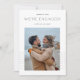Une carte de faire-part fiançailles élégante et moderne avec une seule photo verticale ou orientée portrait avec un découpage pointillé subtil. "We're Engaged!" apparaît en haut, avec vos noms et détails supplémentaires en italique classique.