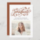 Félicitations à tous ! Annoncez votre diplôme à votre famille et à vos amis avec ce faire-part de graduation photo personnalisable. Ce faire-part de remise de diplômes de photographie propose une calligraphie rustique et une photo personnalisée pour rendre votre faire-part unique. Ce faire-part rustique de remise des diplômes est parfait pour le lycée, l'université, ou n'importe quel jalon de graduation. Ce faire-part de graduation personnalisé est disponible dans une variété de couleurs et de cartons.