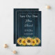 Personnalisez un faire-part mariage unique avec un tournesol bleu rustique Enregistrer la date. Le design des faire-part est orné d'un arrière - plan rustique en bois avec un élégant bouquet de tournesols. Enregistrez également l'annonce de date disponible pour ce design dans une variété de couleurs.