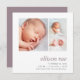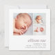 Ces annonces de naissance simples et élégantes comportent 3 photos de nouveau-nés (une verticale et deux petites horizontales ou orientées paysage). Personnalisez avec le nom de votre bébé en lettres italiques classiques alignées à droite pour un look moderne, et ajoutez des statistiques de naissance et une signature de famille en dessous. Un design moderne et minimaliste neutre pour le genre dans une forme carré unique.