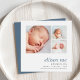 Ces annonces de naissance simples et élégantes comportent 3 photos de nouveau-nés (une verticale et deux petites horizontales ou orientées paysage). Personnalisez avec le nom de votre bébé en lettres italiques classiques alignées à droite pour un look moderne, et ajoutez des statistiques de naissance et une signature de famille en dessous. Un design moderne et minimaliste neutre pour le genre dans une forme carré unique.