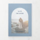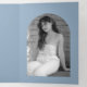 Un mariage moderne sauvez la date avec votre monogramme avec vos détails à l'intérieur d'une arche couleur ivoire sur un arrière - plan bleu poussiéreux. Ne peut-on choisir qu'une seule photo ? Ajoutez quatre de vos photos de fiançailles préférées avec ce triple enregistrer la carte de date. La photo avant comprend une simple superposition pour permettre au texte de s'afficher sur l'image et peut être supprimée dans l'outil d'édition de conception. Ce design simple et élégant aux couleurs feutrées peut être parfait pour un mariage de printemps, d'été ou d'hiver.
