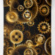 Sans joint, métal, laiton, or engrenages sur arrière - plan foncé rouillé. Style Steampunk.