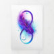 Infinity symbole with a beautiful feather painted in purple and blue bright colors on white background